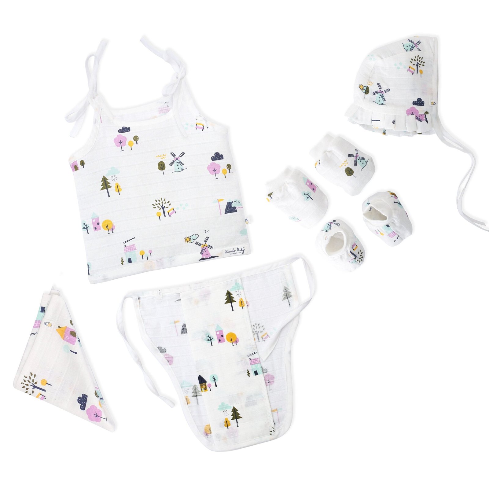 The Baby essential Starter gift Kit – 6 piece set – Farmyard Tales is created as a newborn essentials kit intended to support everyday baby care routines. The items included are selected for comfort and practicality, making them suitable for regular use. Visible elements such as coordinated pieces, simple construction, and easy-to-use designs help simplify daily care. This newborn essentials set is used as a starter collection for home use or gifting purposes. It maintains practicality with repeated use and offers a clean, neutral presentation without unnecessary claims.